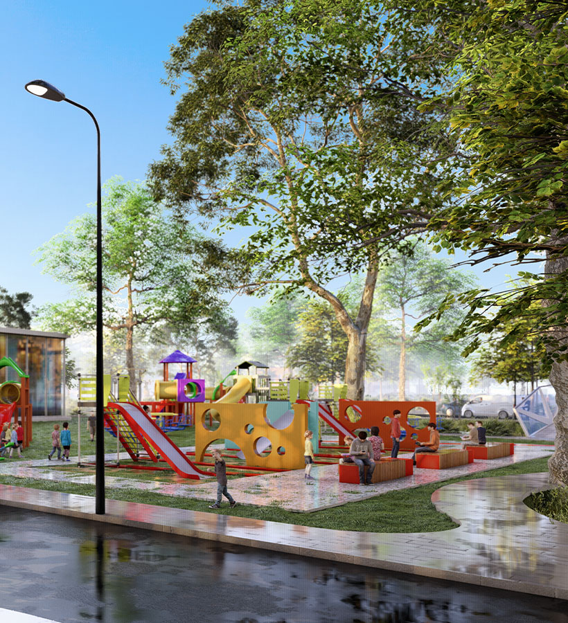 Sector SOUTHVILLE is the most vibrant area of GRANVILLE, featuring a modern retail zone with a variety of shops, a food court, entertainment options, and a gaming hub, providing a dynamic experience for residents. Set beside a serene lake and surrounded by pedestrian walkways and indigenous trees, the sector offers a peaceful atmosphere. The Children’s Play Area is located adjacent to the retail zone, ensuring easy access for families. SOUTHVILLE also caters to the community’s social needs, with facilities including a retirement home, an orphanage and a dedicated graveyard only for GRANVILLE community.