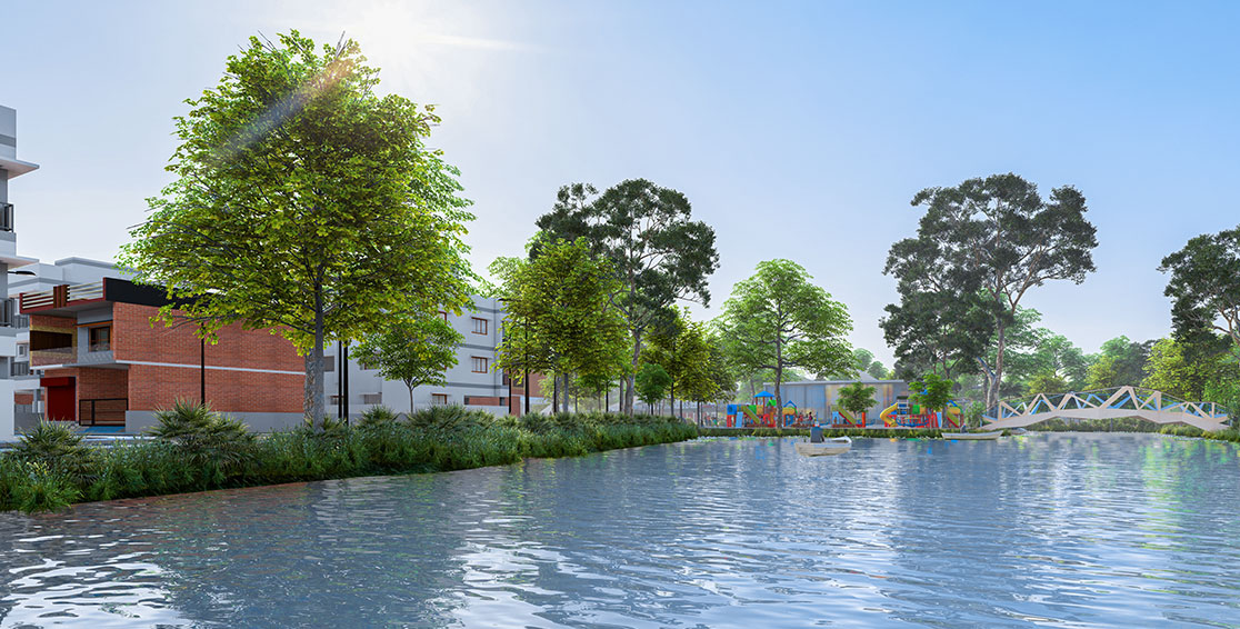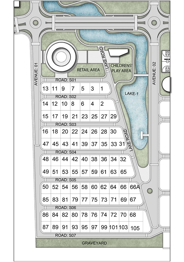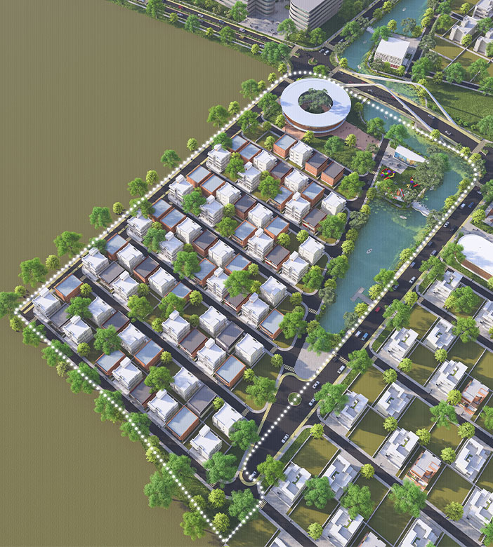 Sector SOUTHVILLE is the most vibrant area of GRANVILLE, featuring a modern retail zone with a variety of shops, a food court, entertainment options, and a gaming hub, providing a dynamic experience for residents. Set beside a serene lake and surrounded by pedestrian walkways and indigenous trees, the sector offers a peaceful atmosphere. The Children’s Play Area is located adjacent to the retail zone, ensuring easy access for families. SOUTHVILLE also caters to the community’s social needs, with facilities including a retirement home, an orphanage and a dedicated graveyard only for GRANVILLE community.